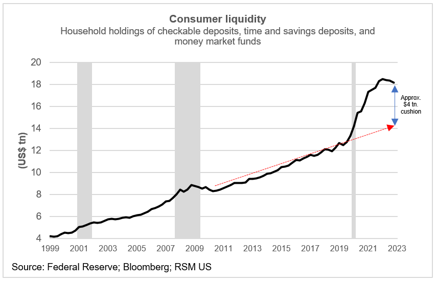 Un pilier de l’économie américaine dans la reprise après la pandémie a été les bilans des ménages, qui ont été soutenus par un marché du travail robuste et une croissance du revenu nominal.