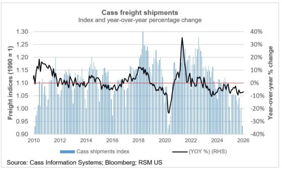 Le signal macroéconomique critique est la divergence entre les volumes et les prix. Alors que les volumes d'expédition sont à des niveaux proches de la récession, le taux de fret déduit de Cass a augmenté pour atteindre environ 16 % d'une année sur l'autre.