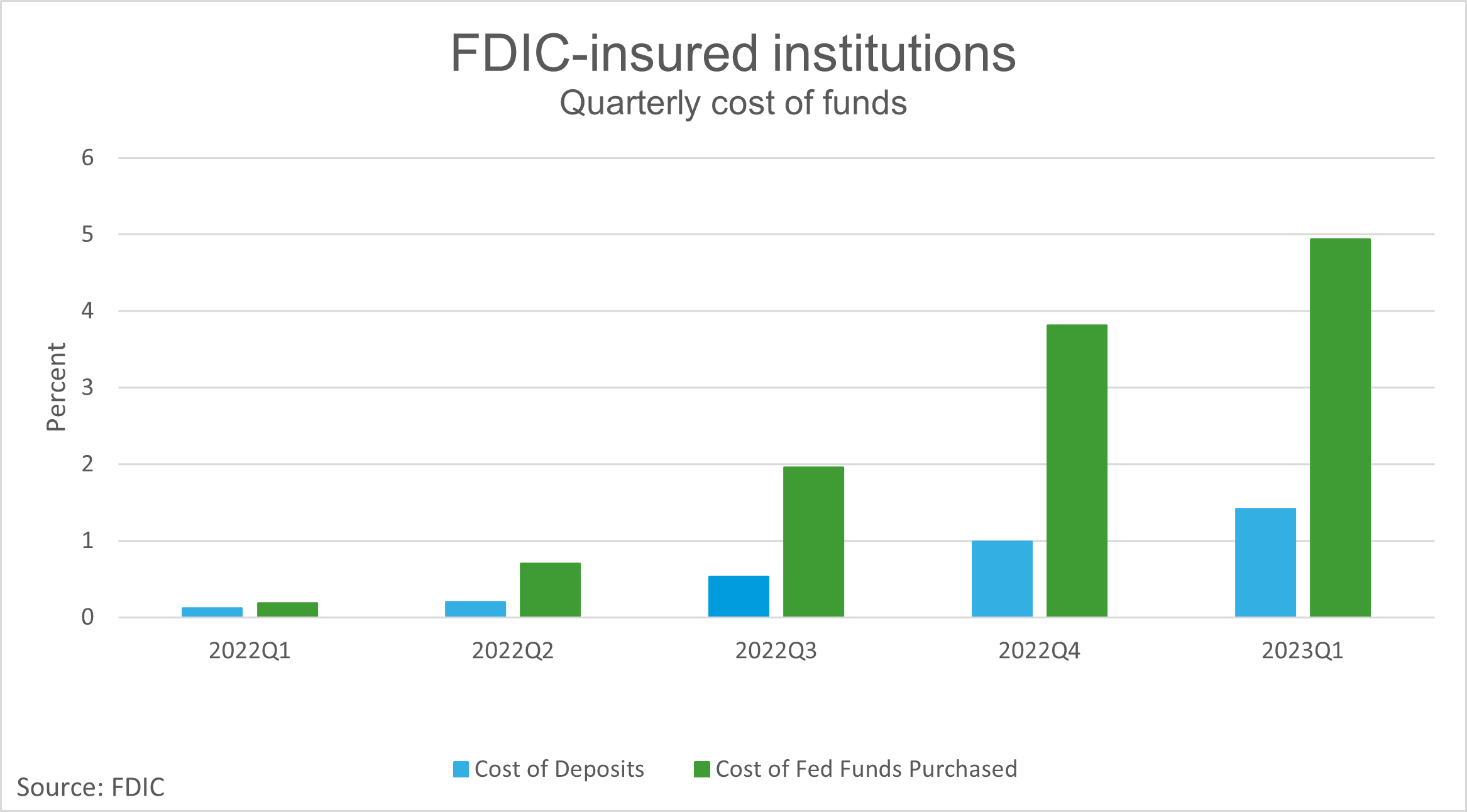 Bien qu’il n’y ait pas encore de fluctuation extrême, avec un NIM en baisse de 7 point de bases sur le trimestre, nous continuerons à voir des banquiers avoir un laser se concentrer sur les dépenses dans un effort pour tenir compte de l’augmentation continue du coût des fonds. Le coût des dépôts a augmenté de 1 126 % d’une année sur l’autre, passant de 0,2 au T1 22 à 1,42 au T1 23. Bien qu’il s’agisse d’un bond important, l’augmentation n’a pas comparer à l’époustouflant croissance dans le coût de Ffonds ed achetéqui a sauté de 0,19 au T1’22 à 4,74 au T1’23.