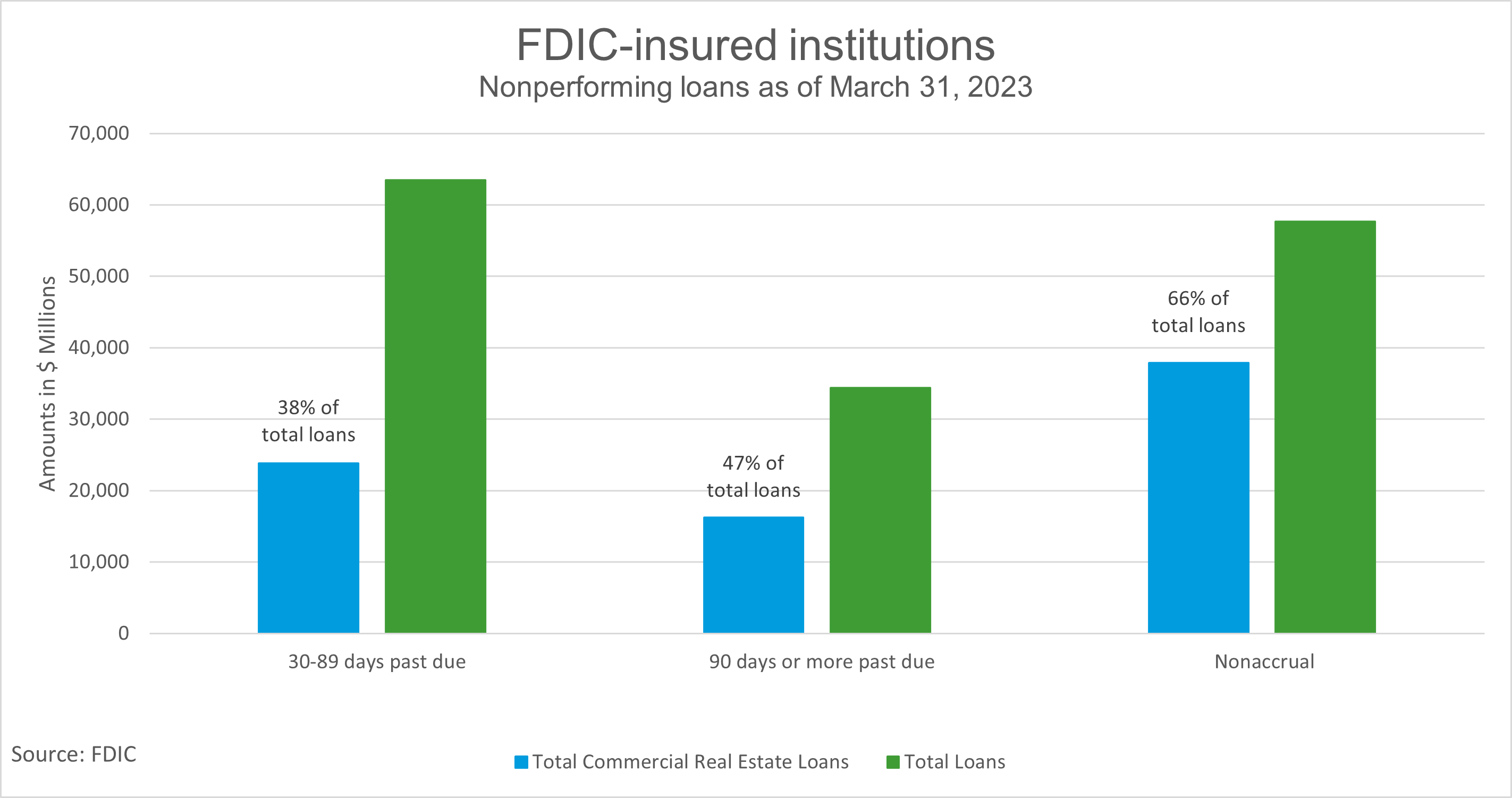 L’immobilier commercial représente 48 % du total des prêts des banques assurées par la FDIC au 31 mars. une légère augmentation de ces mesures non performantes alors qu’elles commencent à rebondir sur ces creux incroyables.