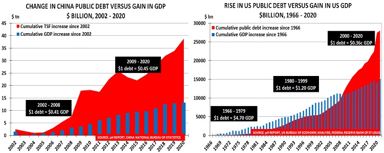 Comme le montre le graphique pour les États-Unis et la Chine, toute cette dette n’a pas réussi à créer une croissance du PIB :
