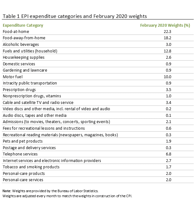 les repas, l'essence et les services publics. Il exclut les prix des achats peu fréquents,