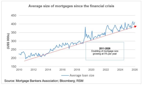 Par exemple, la taille moyenne d’une nouvelle maison aujourd’hui est d’environ 2 400 pieds carrés, soit environ 6 à 8 % de plus qu’il y a un quart de siècle et 30 % plus grande que la taille moyenne d’une nouvelle habitation mise en chantier de 1 700 pieds carrés en 1976.
