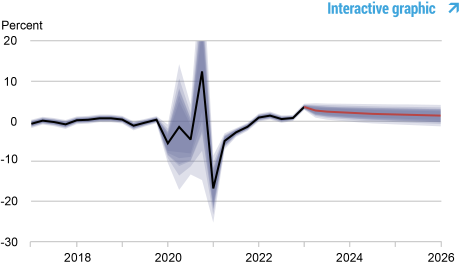Marco Del Negro, Aidan Gleich, Donggyu Lee, Ramya Nallamotu et Sikata Sengupta, « The New York Fed DSGE Model Forecast— June 2023 », Federal Reserve Bank of New York Économie de Liberty Street16 juin 2023, https://libertystreeteconomics.newyorkfed.org/2023/06/the-new-york-fed-dsge-model-forecast-june-2023/.
