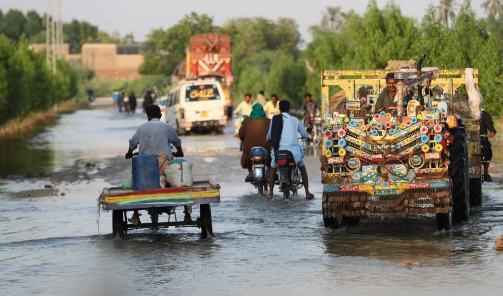 À l’été 2022, comme l’a dit le secrétaire général de l’ONU, António Guterres, « la mousson était sous stéroïdes » : le Pakistan a reçu 190 % de ses précipitations normales en juillet et août. Il est important de noter que le Balouchistan, dans l’ouest du pays, normalement non affecté par la mousson d’été, et le Sind, dans le sud, ont reçu 450 % de pluie en plus que la normale. Avec des bassins d’inondation saturés d’eau, le système de drainage naturel a été submergé et une vaste zone de riches terres agricoles et d’établissements humains a été inondée.