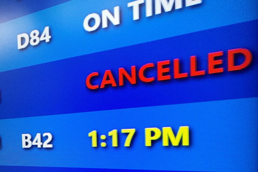 Le tableau des vols montre les vols annulés de Southwest Airlines à l’aéroport international de Pittsburgh en Pennsylvanie jeudi.
