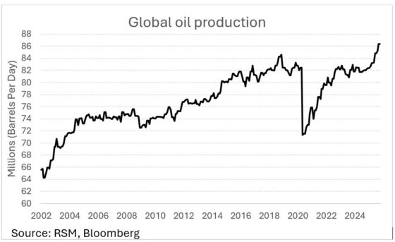 Deuxièmement, la production mondiale totale de pétrole s'élève à 86 millions de barils par jour, selon les dernières données disponibles jusqu'en octobre 2024. Si l'on y ajoute la production de gaz naturel, de condensats, de biocarburants et d'autres liquides, cela représente 103,5 millions de barils par jour.